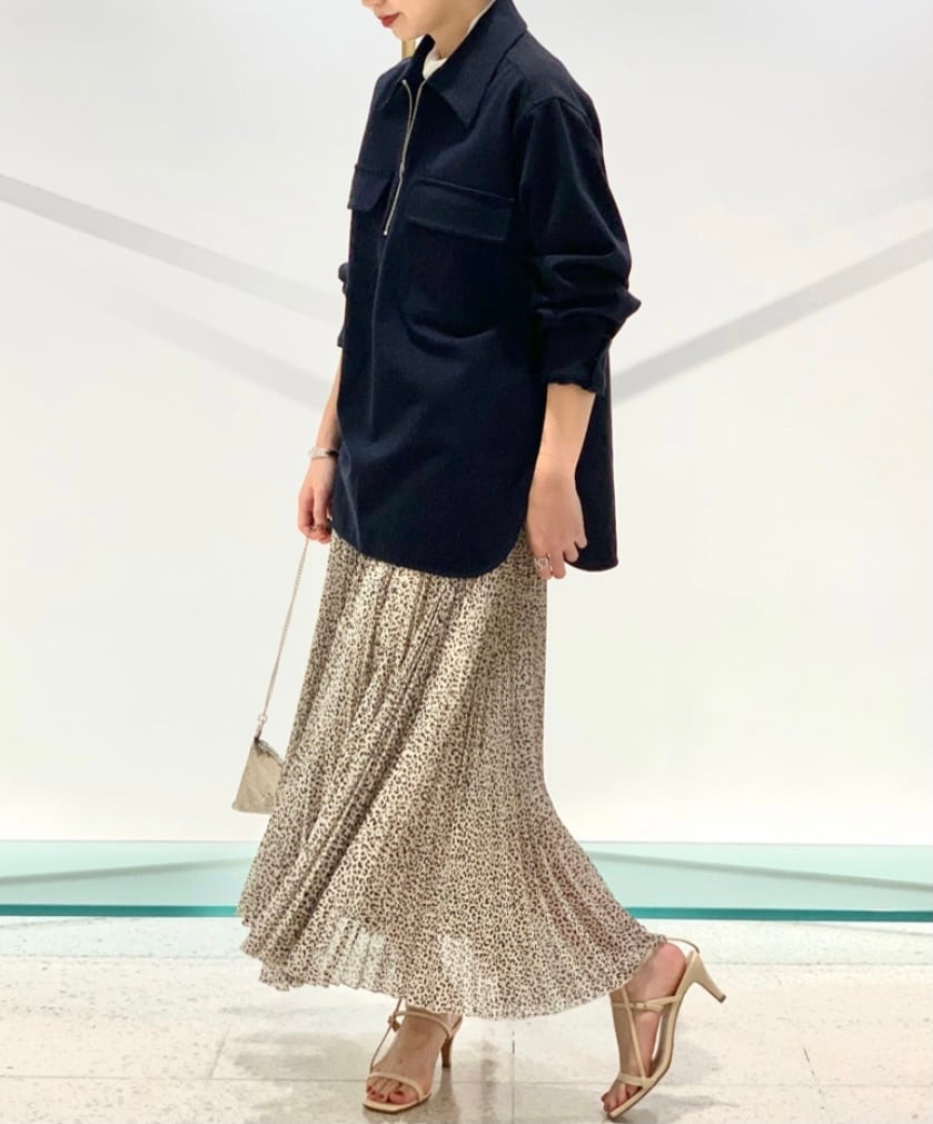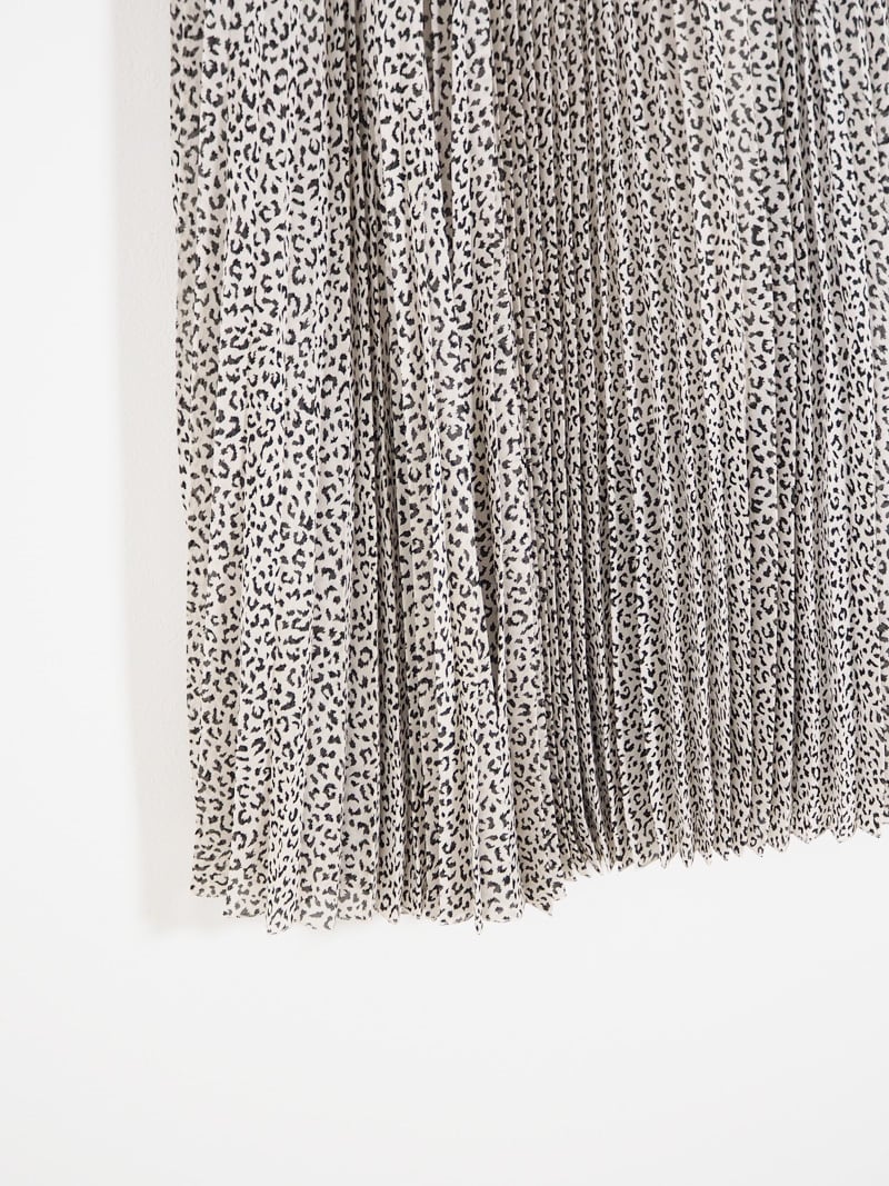 細かなレオパード柄がポイントのプリーツマキシスカート。