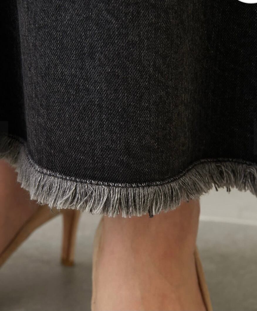 メリハリのあるシルエットが目を惹くデニムロングスカート。程よく肉厚でハリ感のある12.5オンスのデニム素材を使用し、バイオ・ブリーチ・オーバーダイ加工を施した味のある風合いが魅力。デニムならではのフィット感のあるすっきりとした腰回りや、裾に向かって広がるマーメイドラインが女性らしいシルエットを引き立ててくれる。ブラックデニムのシャープな雰囲気と、裾の断ち切りのデザインのさりげないカジュアル感がバランスよく、洗練感のある大人のカジュアルスタイルを叶えてくれそう。シーズンレスなデニム素材がうれしく、合わせるトップスやシューズによって季節ごとに様々なコーディネートを楽しんでみては。